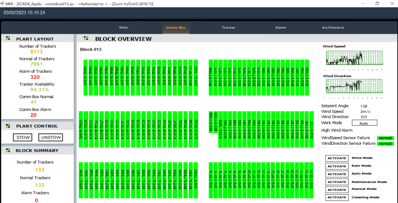 其次,Tracker SCADA将分析信息和处理结果实时传送至清扫机器人系统,指导清扫机器人作业,从而实现对清扫机器人的全自动控制,进一步降低运维成本和风险。