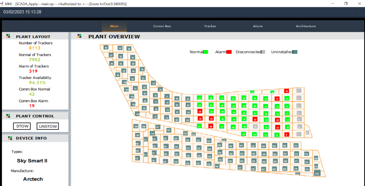 阿拉伯联合酋长国建设的艾尔达芙拉PV2太阳能电站项目,是迄今为止全球最大的单体太阳能电站项目,总装机容量2.1GW。在该项目中,Tracker SCADA完成对29000多套光伏支架信息进行实时采集,IO点多达60万个,如此数据规模的光伏支架SCADA系统在国内、外尚无先例。
