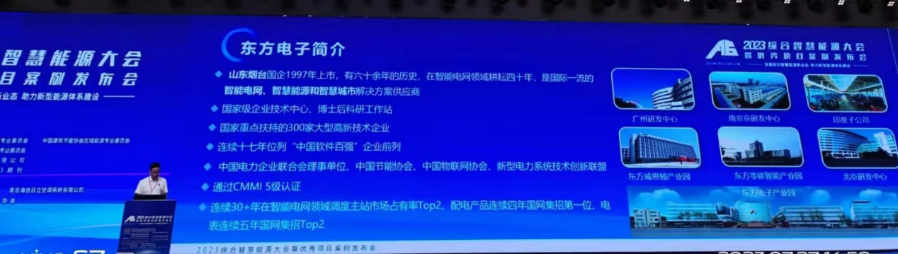 东方电子申报的《南方电网智分布式源荷聚合服务平台》项目、《胜利油田源网荷储一体化智慧能源系统》项目获评“综合智慧能源优秀示范项目”称号。