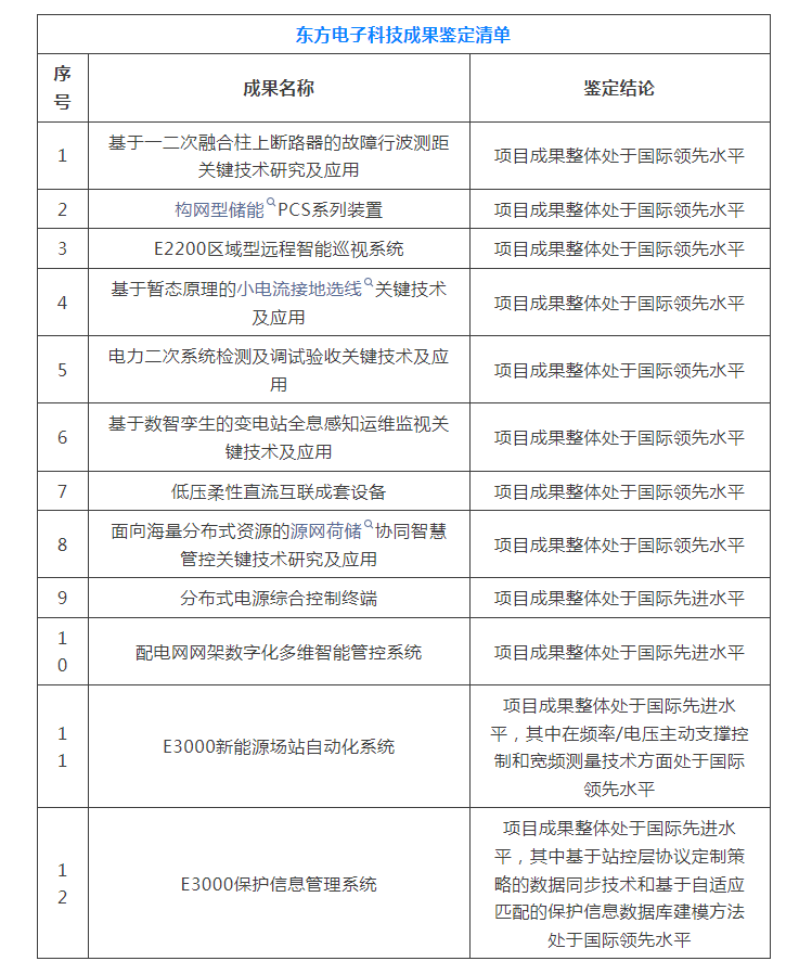 2024年12月14日,东方电子集团在中国电机工程学会主办的科技成果鉴定会上成功通过12项科技成果评审。其中,8项成果达到整体国际领先水平;2项成果达到整体国际先进水平,关键技术达到国际领先水平;2项成果达到整体国际先进水平。